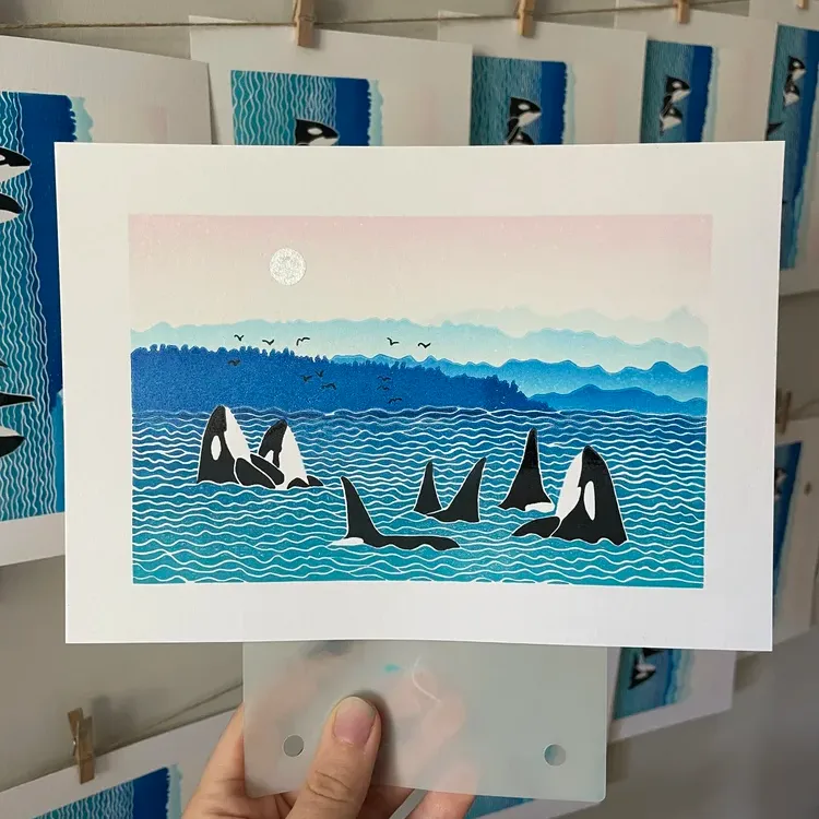 What started as a personal practice quickly grew into a small creative business. In 2021, I launched The Wild Print Studio and sold 100 prints in my first month! With a background in project management and innovation advisory roles, I’ve since grown the business into a full-time creative career, shipping thousands of prints to over 30 countries and building a life that allows me to work on my own terms.